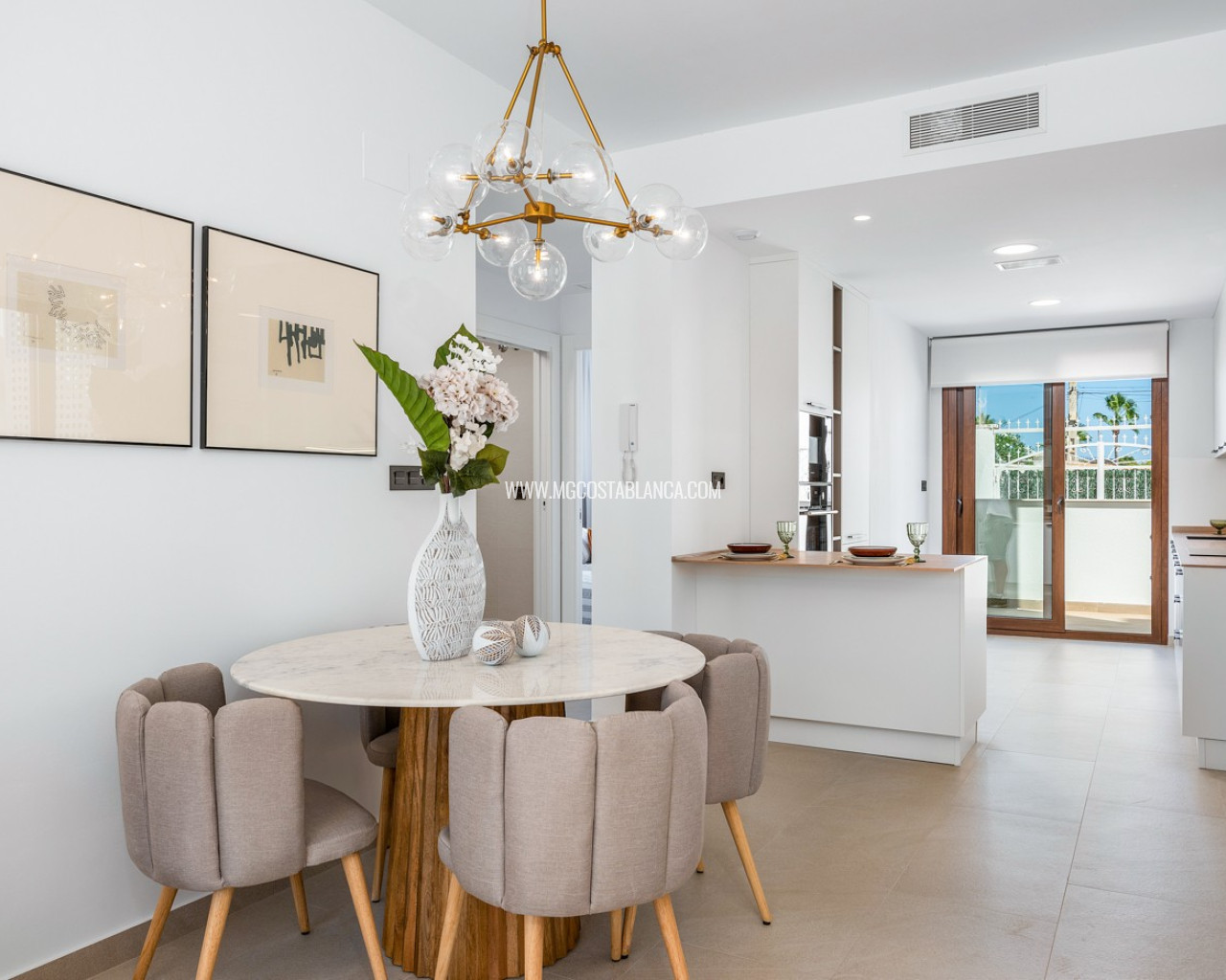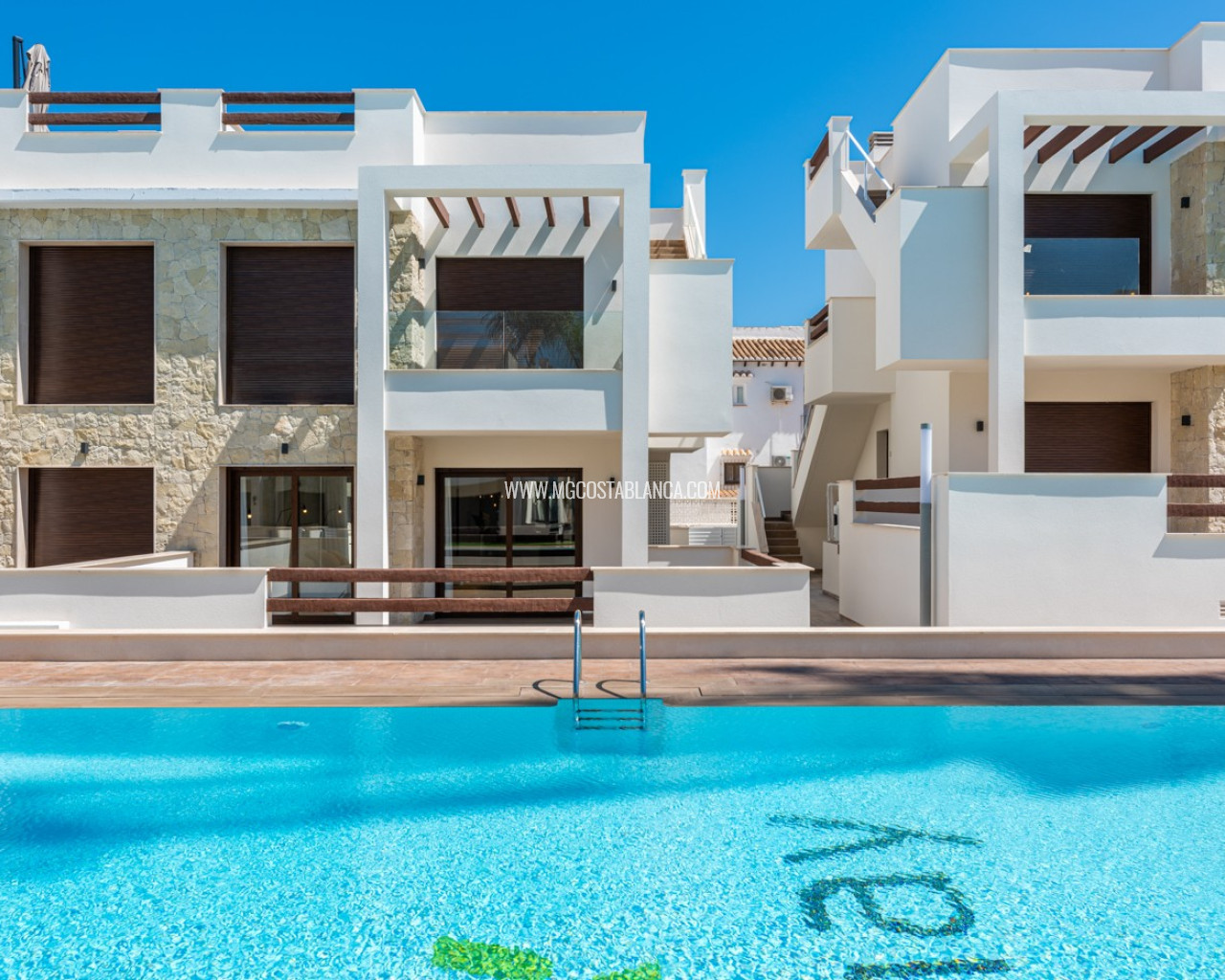 Bungalow de planta baja en urbanización de Torrevieja Qué suerte tendrás viviendo en este precioso bungalow de nueva construcción en Torrevieja. Pertenece a un lujoso residencial conocido como Los Balcones de Vivi, desde donde se divisan unas espectaculares vistas a La Laguna Rosa de Torrevieja. Un lugar como ningún otro para desconectar. La propiedad disfruta de una gran terraza privada que, cada mañana, cuenta con la presencia del inagotable sol de la Costa Blanca, además de unas bonitas vistas a los jardines y a las dos enormes piscinas comunitarias. Con el preciado clima del mediterráneo español, las zonas exteriores se convertirán en tu rincón sagrado. Podrás respirar el aire limpio y puro de la naturaleza y el mar Mediterráneo. Los interiores de la casa te conectan con estos preciosos exteriores gracias al diseño de sus puertas cristaleras y ventanales. Te sorprenderá descubrir qué se esconde en sus 62 m2: una cocina abierta moderna con barra para el desayuno, un luminoso salón comedor multifunctional, 2 habitaciones llenas de confort y 2 baños de ducha con las más altas especificaciones. Vivirás en una de las zonas más codiciadas de Torrevieja, con mucha oferta de ocio y muchos atractivos a tu alrededor: Paraje Natural de Lagunas de Torrevieja – La Mata Playas y calas de arenas suaves y aguas transparentes, certificadas con la Q de Calidad Turística 4 Campos de Golf, entre ellos Las Colinas Golf & Country Club Senderos y parques ecológicos ideales para pasear, fotografiar y caminar junto a tu mascota Centro comercial La Zenia Boulevard, el más grande de la provincia de Alicante Este bungalow busca un propietario como tú, con ganas de disfrutar del sol, las terrazas y todas las comodidades de la Costa Blanca Sur.